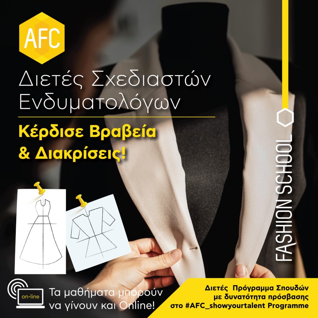 Ολοι οι σπουδαστές, λόγω αποκλειστικής πρόσβασης σε διεθνείς διαγωνισμούς μόδας και ειδικές παροχές μέσω του #AFC_showyourtalent Programme, εισάγωνται στην σχολή κατόπιν αξιολόγησης με προσωπική συνέντευξη.